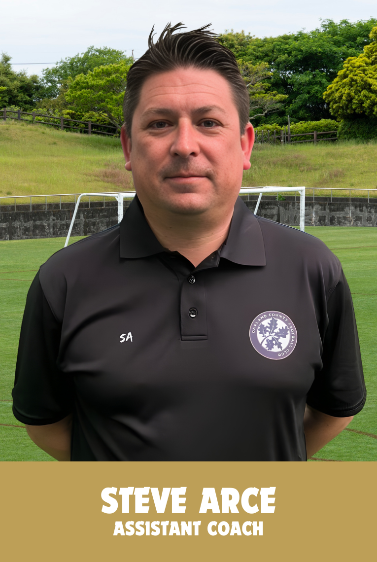 Steve Arce enters his second season as Assistant Coach with Oakland County FC, bringing high-level playing experience and a strong development background to the staff.